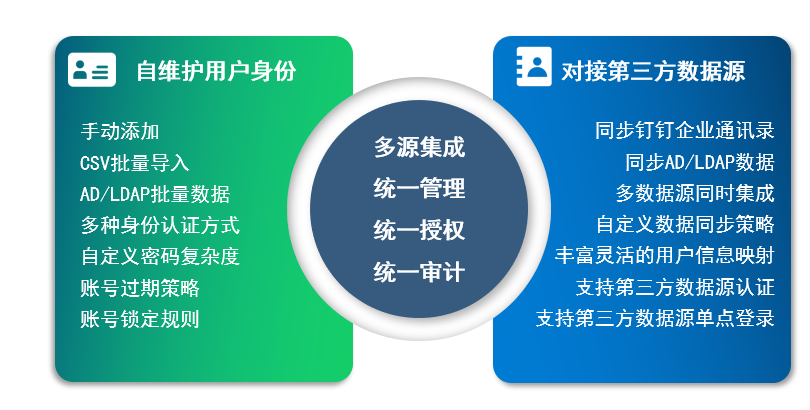 新葡京平台零信任安全管理平台既支持主流企业通讯录系统的数据导入与同步,也支持自建用户体系。实现了在一个平台对企业人员、部门以及角色组的统一高效管理。同时系统提供多种用户认证方式,全方位满足各种需求场景。