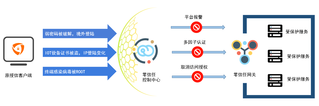 同时系统会根据身份的登陆习惯变化(如时间、地理位置、网络、设备更换等),并结合终端运行环境检测评级技术,动态调整用户登录策略,始终控制用户的最小访问权限。