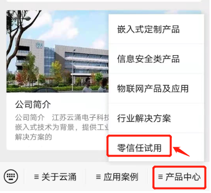 首先关注新葡京平台官方微信公众号,然后进入【产品中心】菜单,并点击下拉菜单中的【零信任试用】进入试用页面,点击免费试用根据提示操作即可。