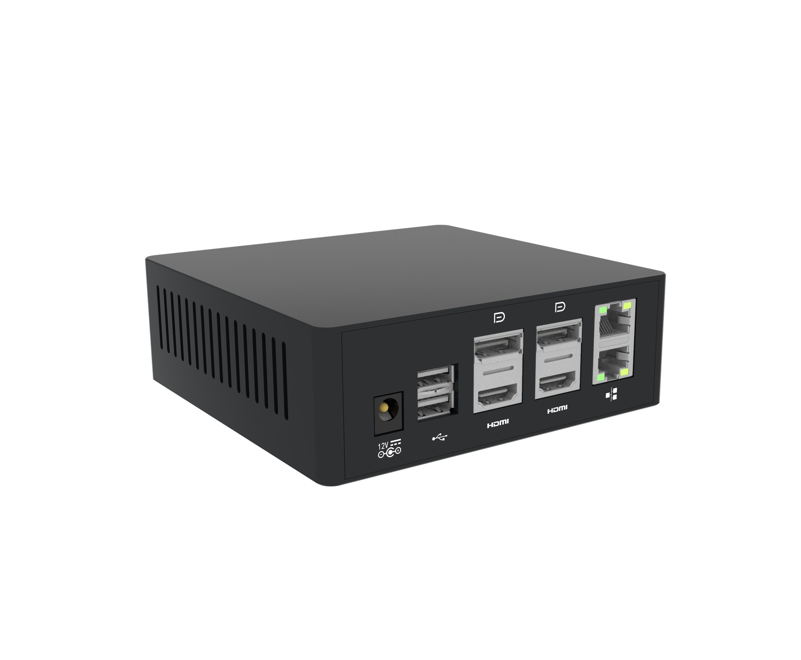 迷你主机NUC云桌面终端(R8101)产品采用国产瑞芯微处理器RK3588构建。主频可达2.2~2.4GHz,集成4个Cortex-A76和4个Cortex-A55,板载8GB LPDDR4X内存;产品可应用于运营商、政府、教育、军队等行业,具体为办公、教学、政务等云桌面应用等场景。