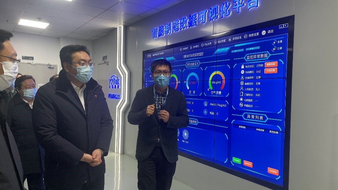 随后,朱书记等一行领导走进我司智能制造车间进行考察,高总重点介绍了公司SMT智能化生产线、“5G+AGV”搬运机器人场景应用等智能车间运行的情况。朱书记对公司的发展以及制造中心的智能化水平给予了充分的肯定,并鼓励公司借力资本市场,继续推进科技创新,实现产品的高价值、高颜值、高效率,促进澳门新葡京官网高质量发展。