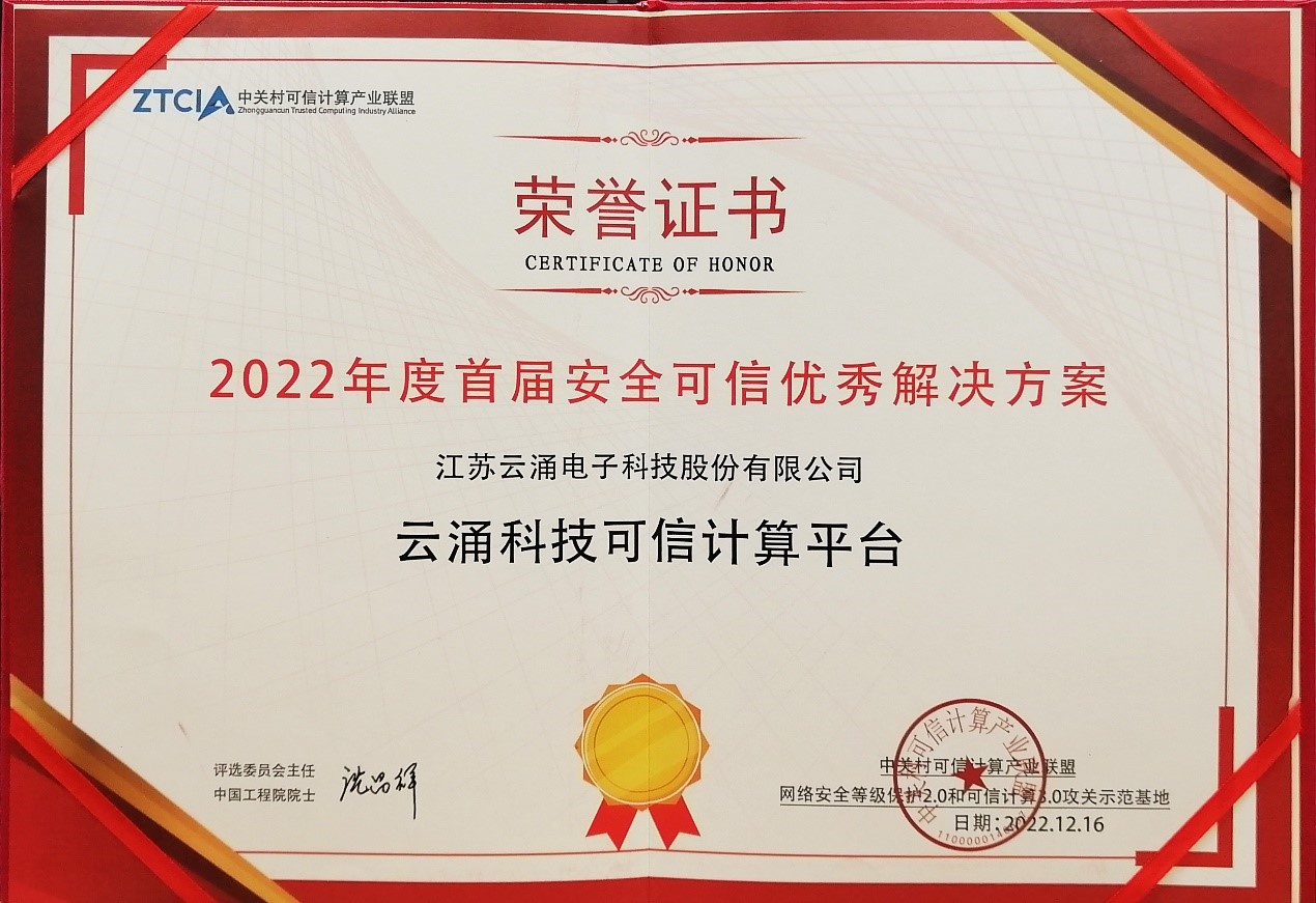 澳门新葡京平台官网可信计算平台荣获首届安全可信解决方案奖