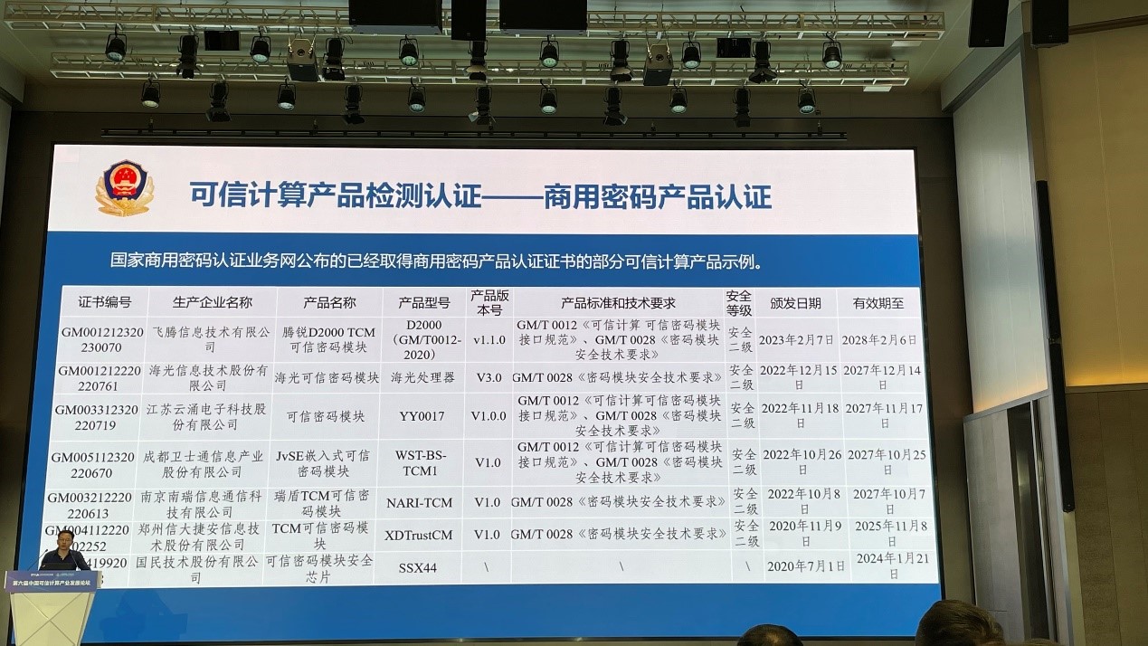 澳门新葡京平台官网副总裁高渊先生全程参与本次论坛会议,并作为企业代表上台领奖。澳门新葡京平台官网可信密码模块YY0017作为已取得商用密码产品认证证书的可信计算产品示例在会议现场被提及,并获得了现场领导和专家们的一致肯定。