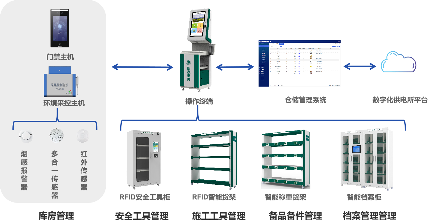 新葡京平台从“四库“不同管理需求出发,以物联网技术为支撑,将供电所中包含的实物管理、存储设备管理、库房环境管理、库房安全防范管理等多种功能集中于一体,打造供电所数字化仓储解决方案,将当前的智能化管理水平延伸至最末端,完善物品全流程的管理,并为供电所仓储实现标准化、规范化、科学化、效能化提供了一套有力的工具,为供电所数字化提供有力支撑。