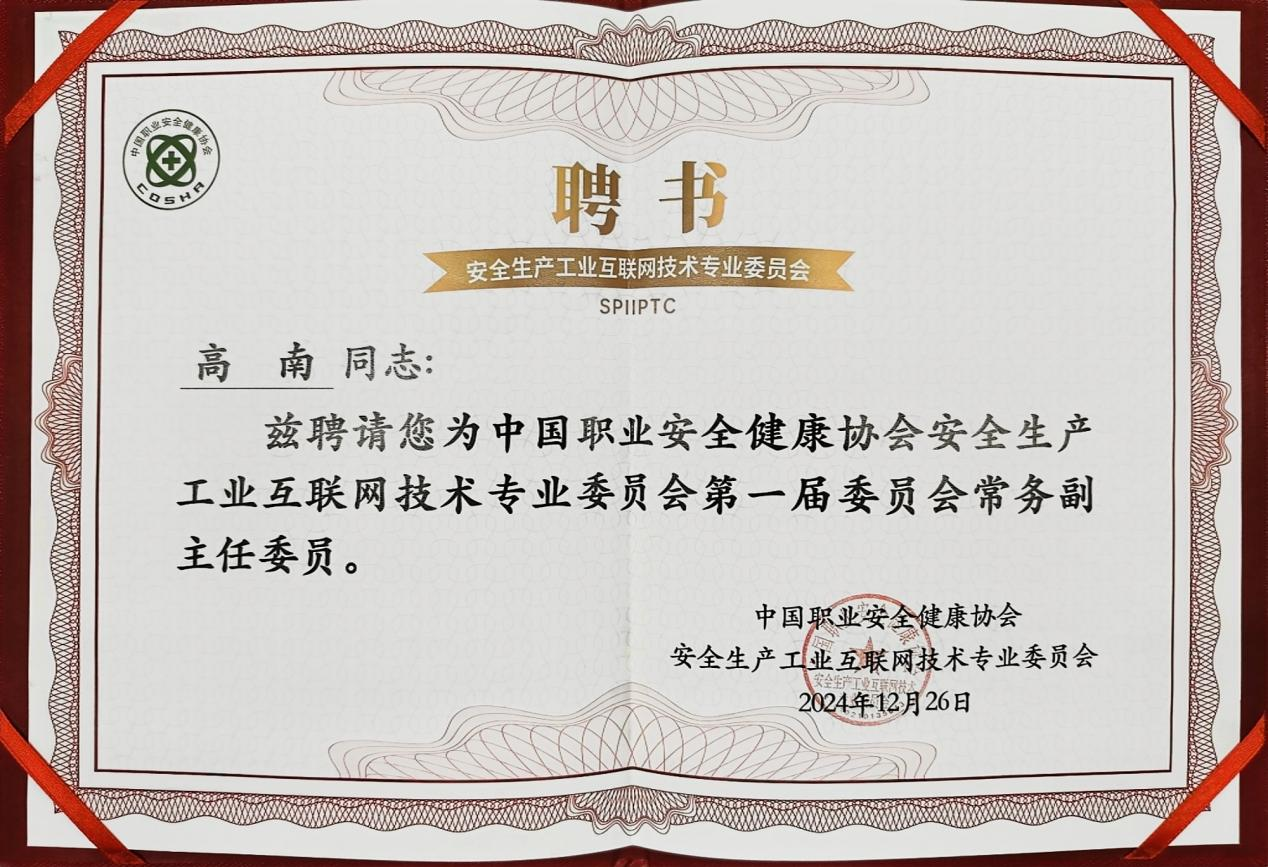 在此次盛会上,澳门新葡京平台官网凭借其卓越的技术实力和行业影响力,荣膺中国职业安全健康协会安全生产工业互联网技术专业委员会常务副主任单位,董事长高南也被授予第一届委员会常务副主任委员殊荣,这不仅是对新葡京平台在安全生产工业互联网领域深耕成果的高度认可,更是对我们今后工作赋予的全新责任与使命。