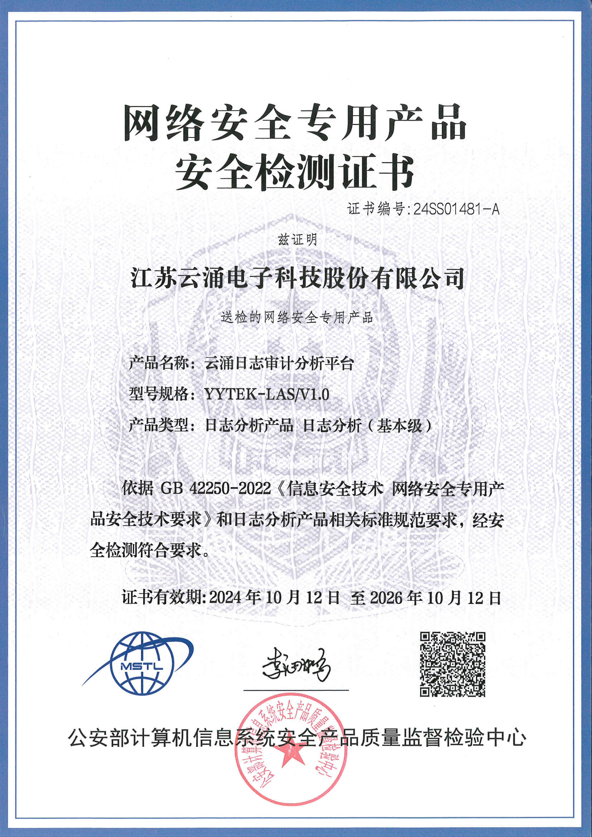权威认证|澳门新葡京平台官网日志审计分析平台获得《网络安全专用产品安全检测证书》