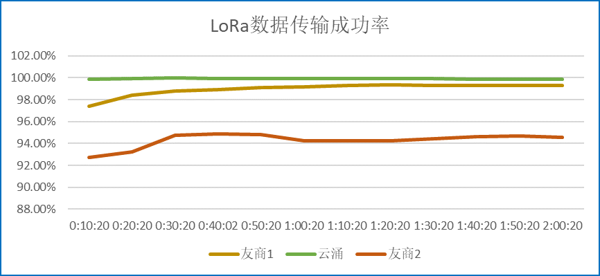 在测试环境稳定且一致的条件下,通过同样的连接方式,对比澳门新葡京官网LORA数传电台和另外两家友商设备的测试结果,可以得出:新葡京平台的LoRa DTU拥有更好的抗干扰能力,而且在同频干扰的情况下,传输的成功率更高,传输的稳定性更好。