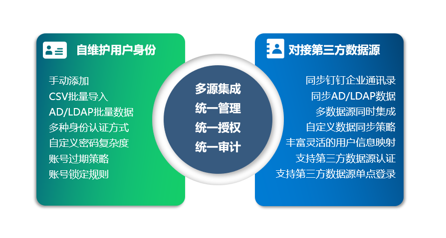 澳门新葡京平台官网零信任安全管理平台既支持主流企业通讯录系统的数据导入与同步,也支持自建用户体系。实现了在一个平台对企业人员、部门以及角色组的统一高效管理。同时系统提供多种用户认证方式,全方位满足各种需求场景。