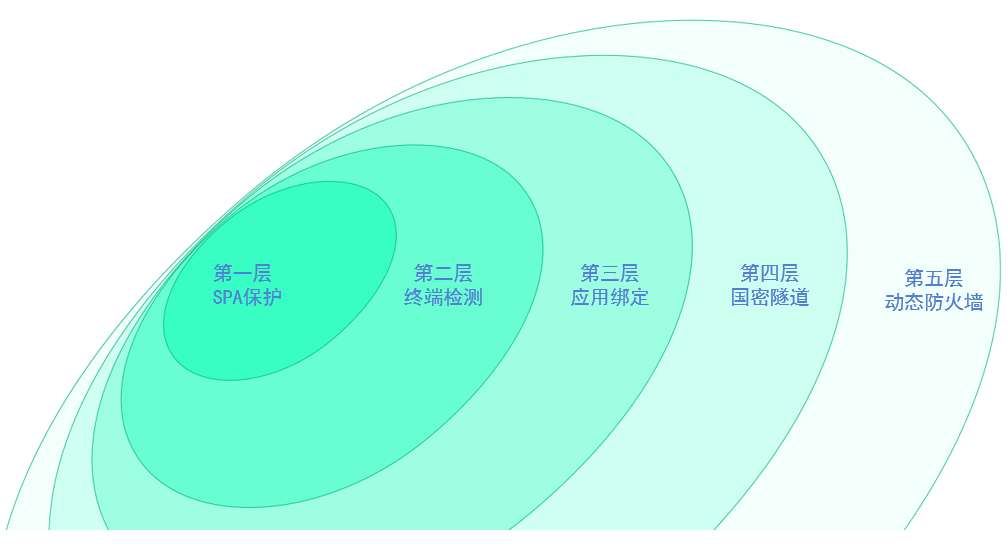 4)传输层采用了GMTLS(国密TLS) 加密隧道。远程访问工具或应用无法通过标准远程协议连接,避免远程访问协议的漏洞攻击